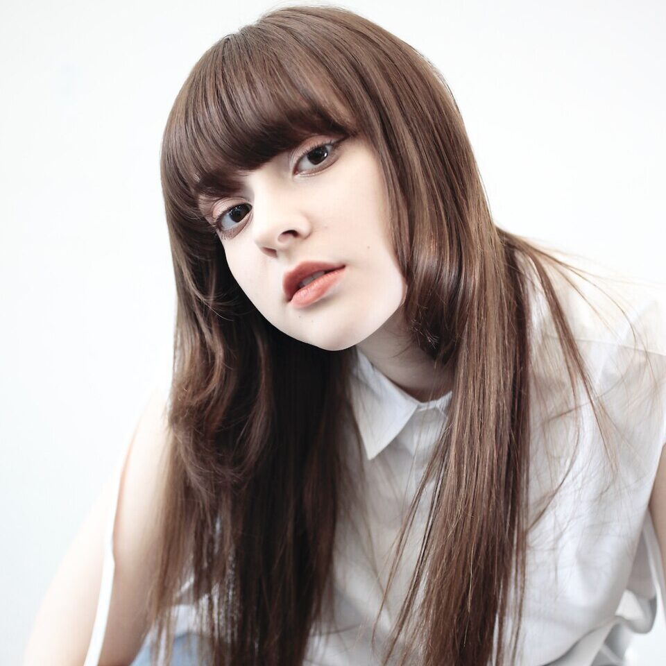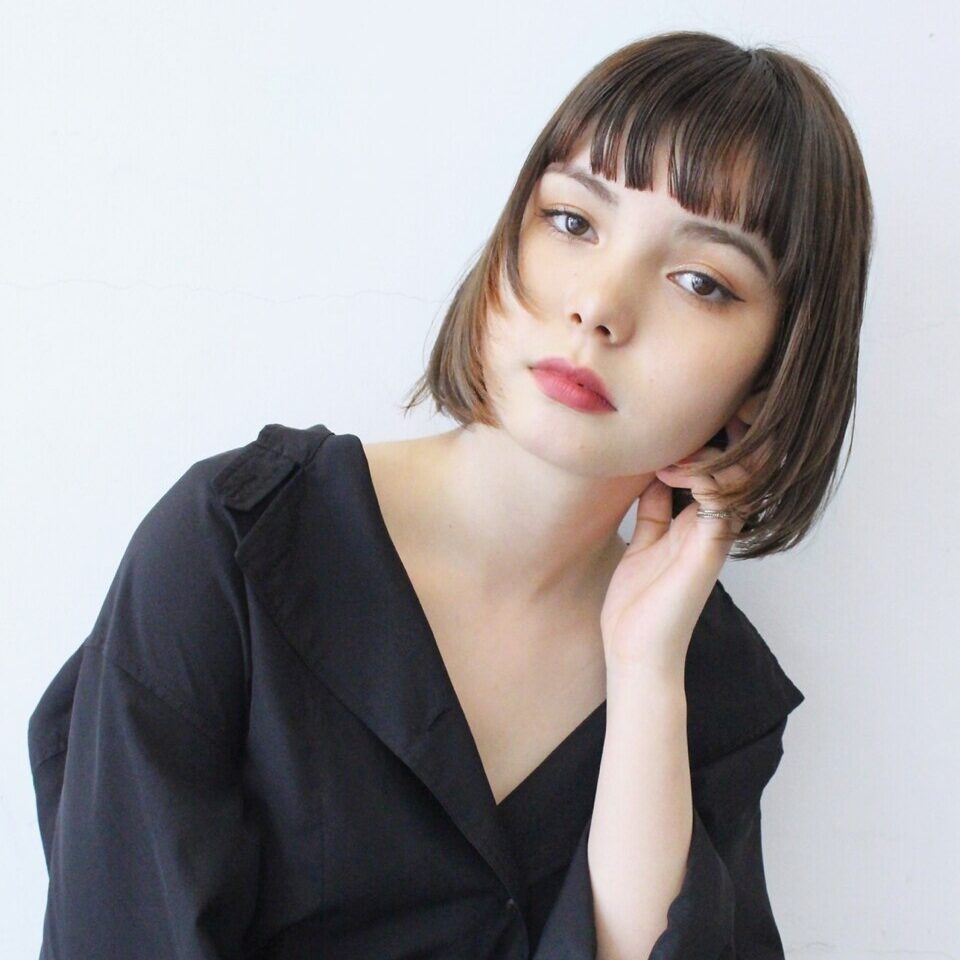 抜け感のある前髪と透明感のあるミルクティーカラーで柔らかく洗練された印象に