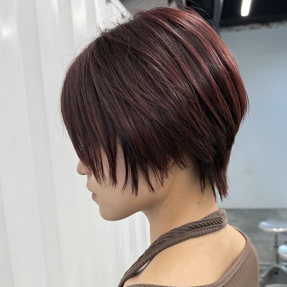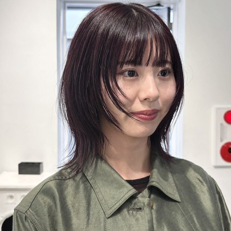 丸みのあるフロント部分と襟足の自然な動きを活かしたマッシュウルフスタイル